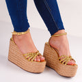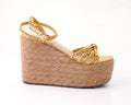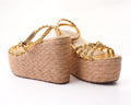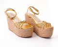 This beautiful platform shoe model comes in gold and silver, both with a 5-inch heel.